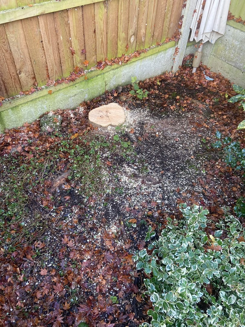 Yes we also have a stump grinder machine, so at an agreed charge we can also remove the stump.